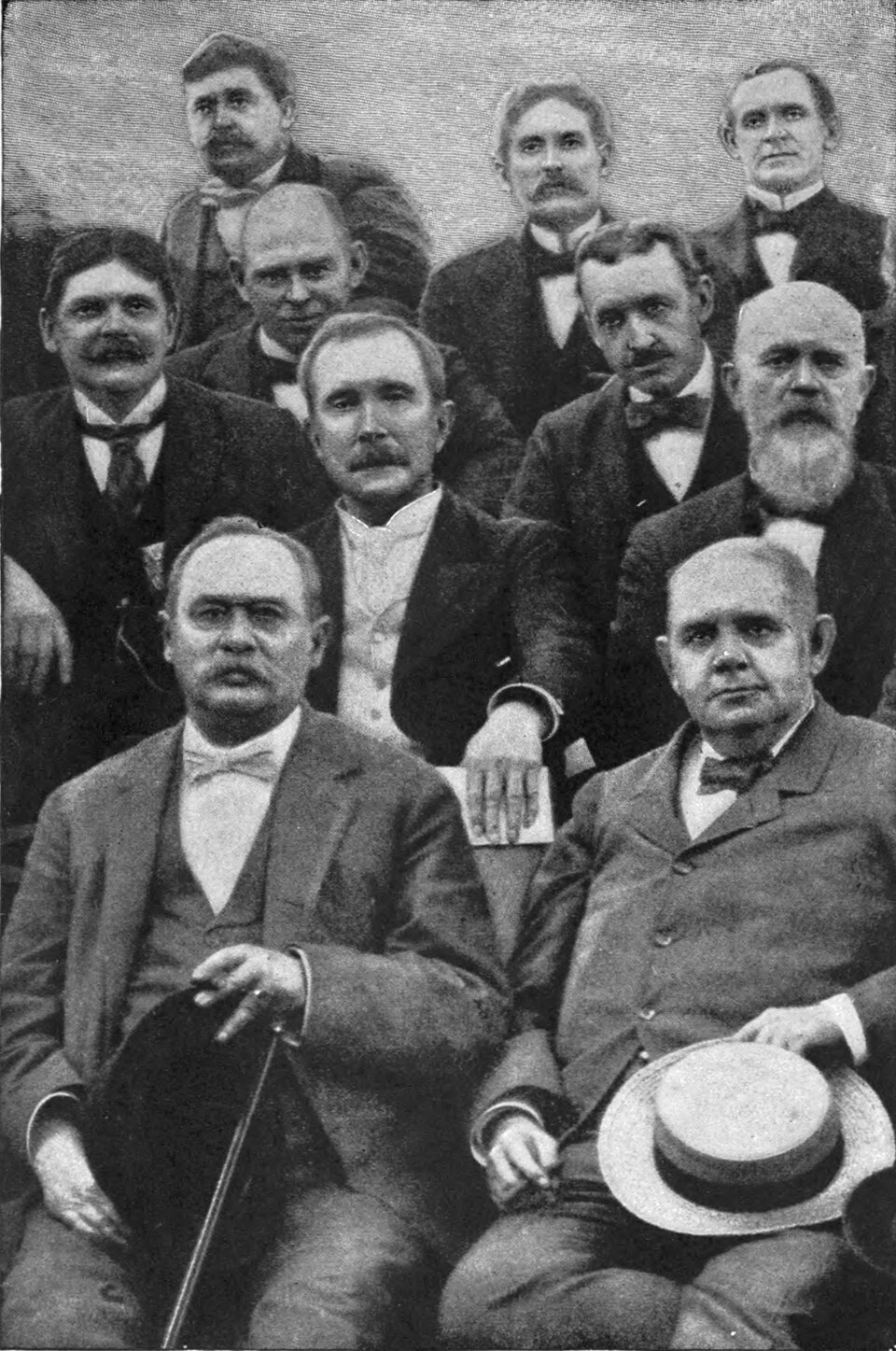 Who called on John D. Rockefeller at his residence, "Forest Hill," on July 25, 1896, to thank him for his gift of park lands to the city. Mr. Rockefeller is in the centre of the group, the late Senator Marcus A. Hanna in the right lower corner, and Governor Myron T. Herrick in the centre of the top row.