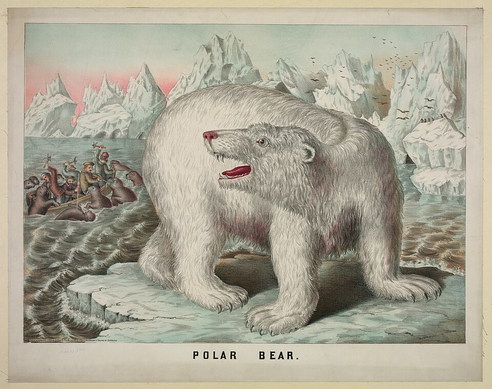 who, finding their means of subsistence running short, and pressed by hunger, ventured on the ice and caught some seals… so there is no impossibility in supposing that the brown bears, who by my theory were the progenitors of the present white bears, were accidentally driven over to Greenland and Spitzbergen by storms or currents.