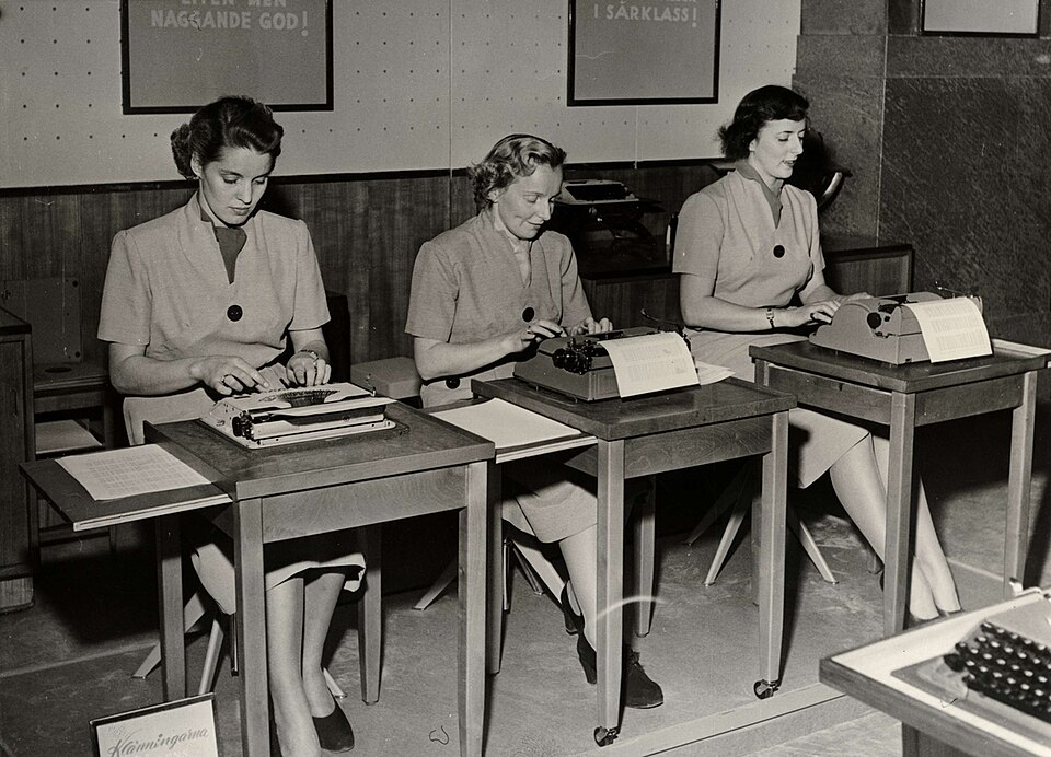 But contrary to assumptions, typists’ labor required advanced technical skills. Most women in the workforce were trained at secretarial or typing schools, a considerable investment of time and money. Office secretaries were also often required to move beyond the skills they were trained in—touch-typing, taking dictation—to other areas such as graphic design, research, and editing. Secretarial manuals from the first half of the 20th century, like John Gregg and Rupert SoRelle’s widely used Applied Secretarial Practice (1934), evince the immense range of duties demanded of the average secretary, with chapters covering the United States tax code for handling payroll contrasting sharply with chapters on personal grooming and cultivating a cheerful telephone persona.